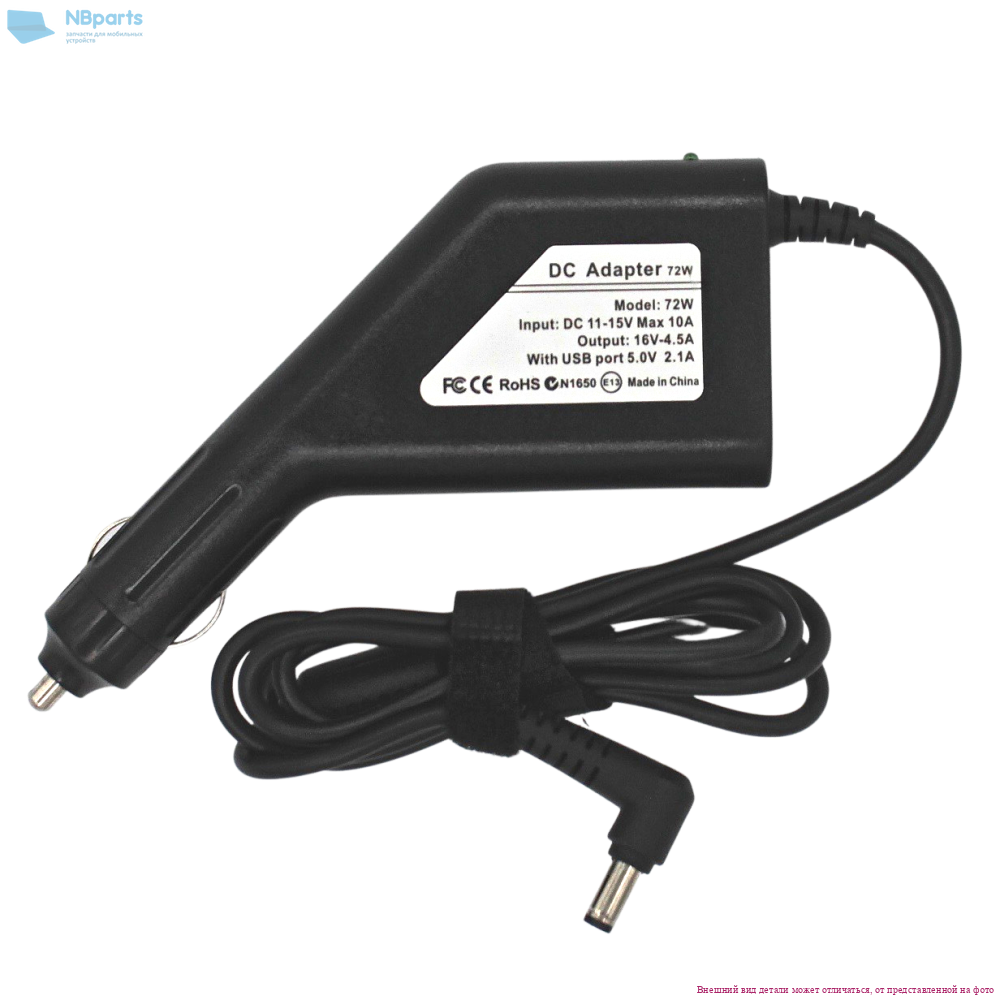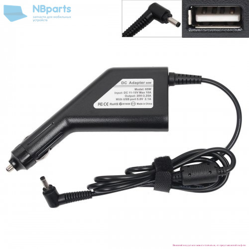 Автомобильное зарядное устройство для ноутбука Asus 65W, 19V 3.42A, 4,0x1,35