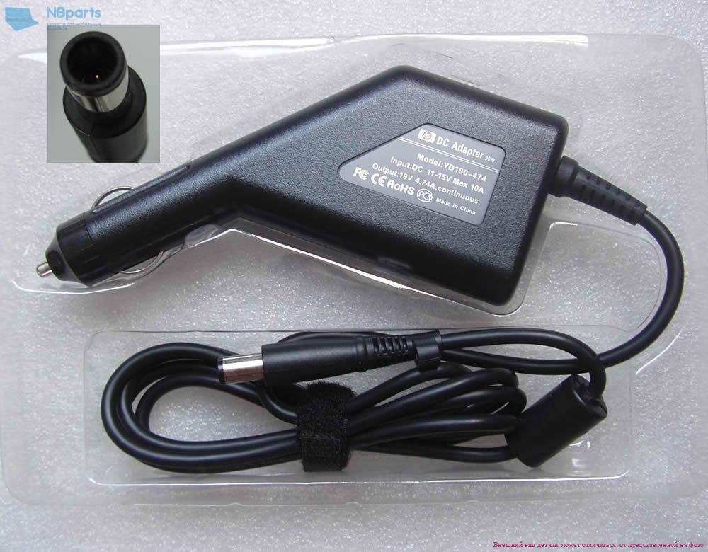 Автомобильное зарядное устройство для ноутбука HP 90W, 19V 4.74A, 7.4x5.0