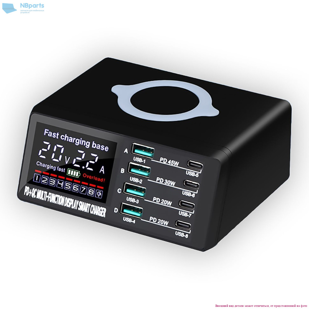 Зарядная станция USB-A, QC 3.0, беспроводная 10W, черный