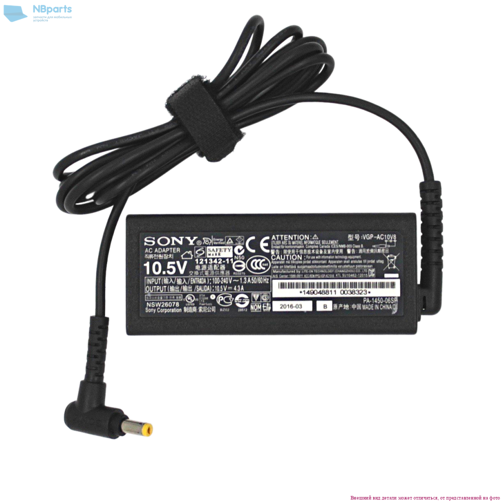 Блок питания (зарядное устройство) для ноутбука Sony 45W, 10.5V 4.3A, 4.8x1.7, VGP-AC10V10, оригинал с сетевым кабелем