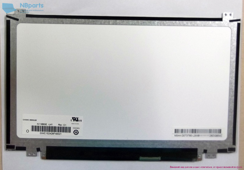 Матрица N116BGE-L42, 1366x768 HD, LVDS (1 ch, 6-bit), 40 pins, TN, глянцевая, уши верх - низ